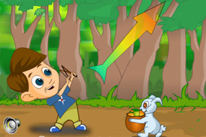 按住鼠标左键键储力,松开发射,打中芒果就会掉来了。还要左右移动鼠标控制兔子去接.