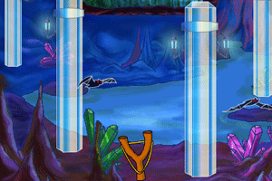 在一个洞窟里,那里藏着很多恐怖的黑蝠,而你来到了这里,手上只有一把弹弓。@@@鼠标左键点击向后拖,松开发射。