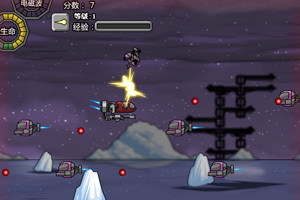 移动 a射击 n防御 d切换武器 f释放电磁波(需能量满) q暂停