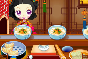鼠标点击面团放在砧板上,然后用擀面杖压成面饼,放上右下角的材料,就能包成饺子了,最后放入左下角的锅里蒸熟就好啦,记住,拿错材料只能丢掉。