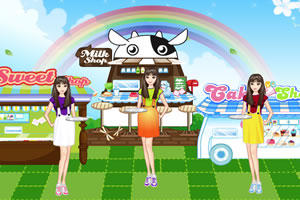 鼠标点击拖动物品布置牛奶蛋糕甜品店。