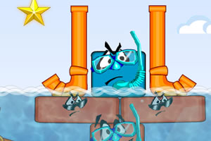 鼠标点击释放人头,帮助没有氧气管的红色小家伙浮在水面上,蓝色小家伙可沉在水里。