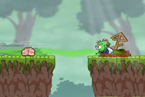 鼠标点击任意地点放脑浆引诱僵尸出来,利用周围地形杀掉他们。