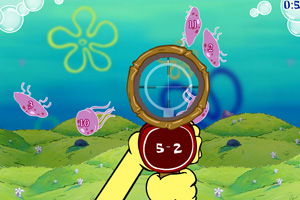 根据枪上面的数学算术,鼠标点击射击标有正确答案数字的水母。