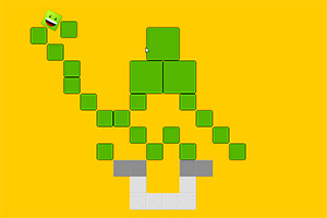 鼠标左键点击消除绿色方块,引导小绿方块到达白色区域,点击右上方的RESET重玩。