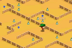键盘方向键↑↓←→/WSAD键控制牛仔移动,注意躲避危险,收集道具,比如白色发光小洞,帽子,笼子等。