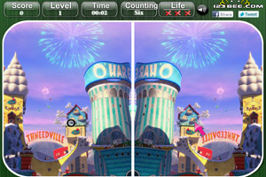 鼠标点击找出两图中的不同之处,点错地方扣分并减少一条生命。