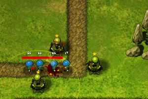 游戏中使用鼠标操作,拖动画面右侧的武器到地图中合适的位置,布置完毕点 GO!下一波 开始出兵。