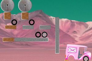 游戏中使用鼠标操作,点击画面中的木块来促使车轮找到汽车。