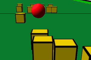 游戏中使用↑↓键控制小红球的前进和后退,使用←→键控制小红球的方向移动。
