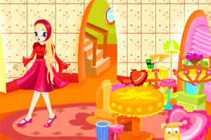 游戏中使用鼠标操作,拖动布景布置卧室。