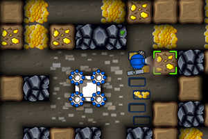 游戏使用鼠标左键点击屏幕下方的选项建造,点击石头进行击打,可以使用↑↓←→/WSAD/鼠标拖动来拖动移动画面。需要击打岩石并收集更多的金矿获得金钱,从而建造更多建筑。达到关卡要求即可过关。