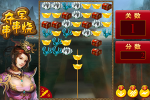 鼠标移动竹签,点击伸出竹签,连续串三个相同的宝物消去。