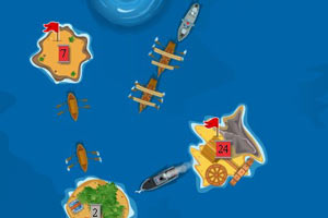 鼠标左键点击拖动命令军舰移动到指定地点,占领下岛屿,不要碰到漩涡哦,Ctrl取消最后的出兵,R键重玩。
