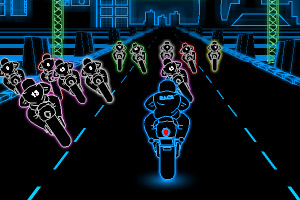 [↑↓←→]:控制摩托车;[Space]:燃烧硝基氮加速;