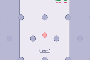 鼠标控制蓝灰色球左右移动,将红球不断往上顶,不要让它落下。