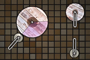 游戏使用鼠标点击转动的轮盘或把手,让转动的轮盘带动所有静止的轮盘转满一圈(360度)即可。