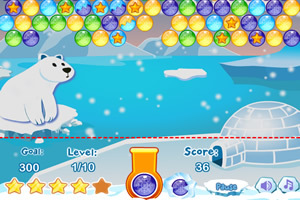 鼠标移动控制发射的方向,点击左键发射泡泡。三个或以上相同的泡泡连在一起即可消除。