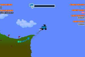 方向键开车,首先应按→键推车,当达到一定的速度按↑键你就可以和车一块飞出去了,在空中方向键←→控制平衡。