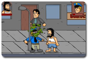 点击“PLAY”开始游戏,方向键控制上下左右人物移动,“A”键是手打还可以捡东西,“S”键是脚踢,方向键“→→”+“A”键是用肚子顶人,“→→”+“S”键是用脚推人,“A、S”键结合可以出现不同的技能在游戏中有提示,大家要注意!