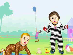 汤姆和莎莉很喜欢玩耍,他们也很可爱!可是,该给他们穿什么衣服好看呢?你来选一选吧!操作指南: