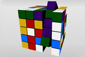 鼠标控制操作,难度有2x2-5x5可以选择,进入相应的游戏。鼠标拖动转动魔方,把相同的颜色拼在一起。
