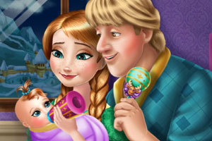 鼠标点击或者拖动道具来和安娜夫妇一起照顾小宝贝。