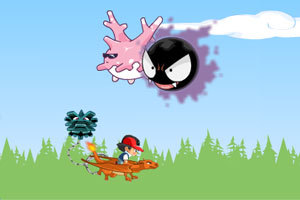 键盘方向键控制喷火龙飞行,小心不要被怪抓到。