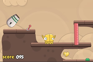 键盘方向键←→/AD键控制小黄怪移动,↑/W键跳跃,空格键或Z键使用分身(次数有限),R键重玩。