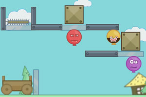 游戏中使用鼠标点击消去灰色方块,帮助紫色气球飞上天,R键重玩。