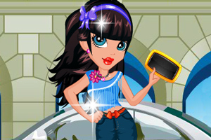 游戏中使用鼠标操作,鼠标点击选择服饰给女孩换装打扮。
