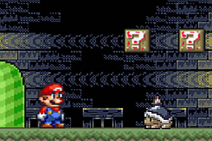 使用键盘的方向键←→键控制左右移动,按↑键跳跃,按↓键下蹲。跳在怪物身上可将其消灭(带刺的怪物除外)。
