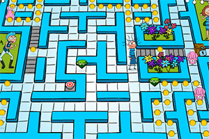 使用键盘方向键↑↓←→键控制人物移动躲避兔子,收集金币。
